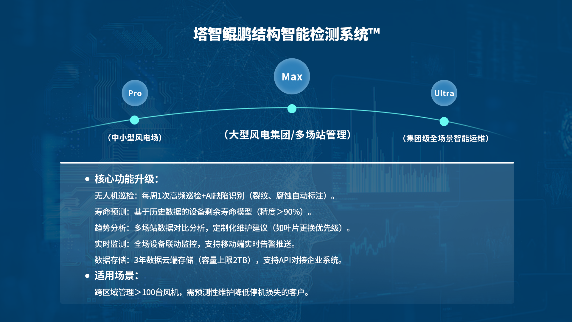 可与主机和叶片监测等智能、大数据、数字孪生系统进行相互配合和融合从而完成建设无人风场拼图风力发电全生命周期的运营"陪伴者"